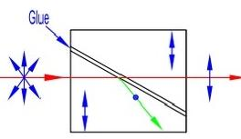 湯普森格蘭棱鏡 由兩塊相同的方解石棱鏡組合而成,非常光線被透射,而尋常光線則被偏轉(zhuǎn)和吸收。