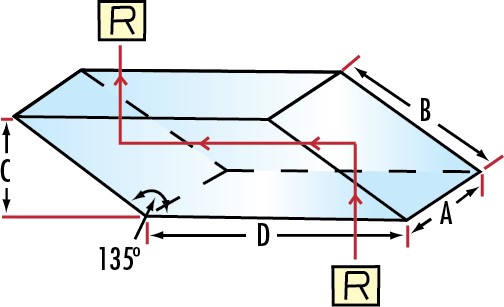菱形棱鏡 可以在不改變圖像方向的情況下對激光束進(jìn)行位移,輸入光束經(jīng)兩個(gè)45度面全內(nèi)反射,從輸出面射出,從而產(chǎn)生橫向位移,在輸入面和輸出面上鍍增透膜可獲得更高的透射率;菱形棱鏡常用于立體視覺系統(tǒng)和潛望鏡系統(tǒng),目前,我們可以達(dá)到角度公差 <5″,光束總偏差 <30角秒,另有大尺寸可選擇。